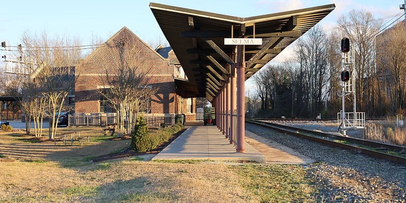 The Selma train station was originally built in 1924 by the Atlantic Coast Line and Southern railroads. Fast forward to today, it is a fairly active little spot and serves passengers riding Amtrak's daily Carolinian between New York City and Charlotte and Amtrak's daily Palmetto that runs between New York City and Savannah. The Selma train station also houses an excellent museum with exhibits on the train station's history and the Town of Selma.